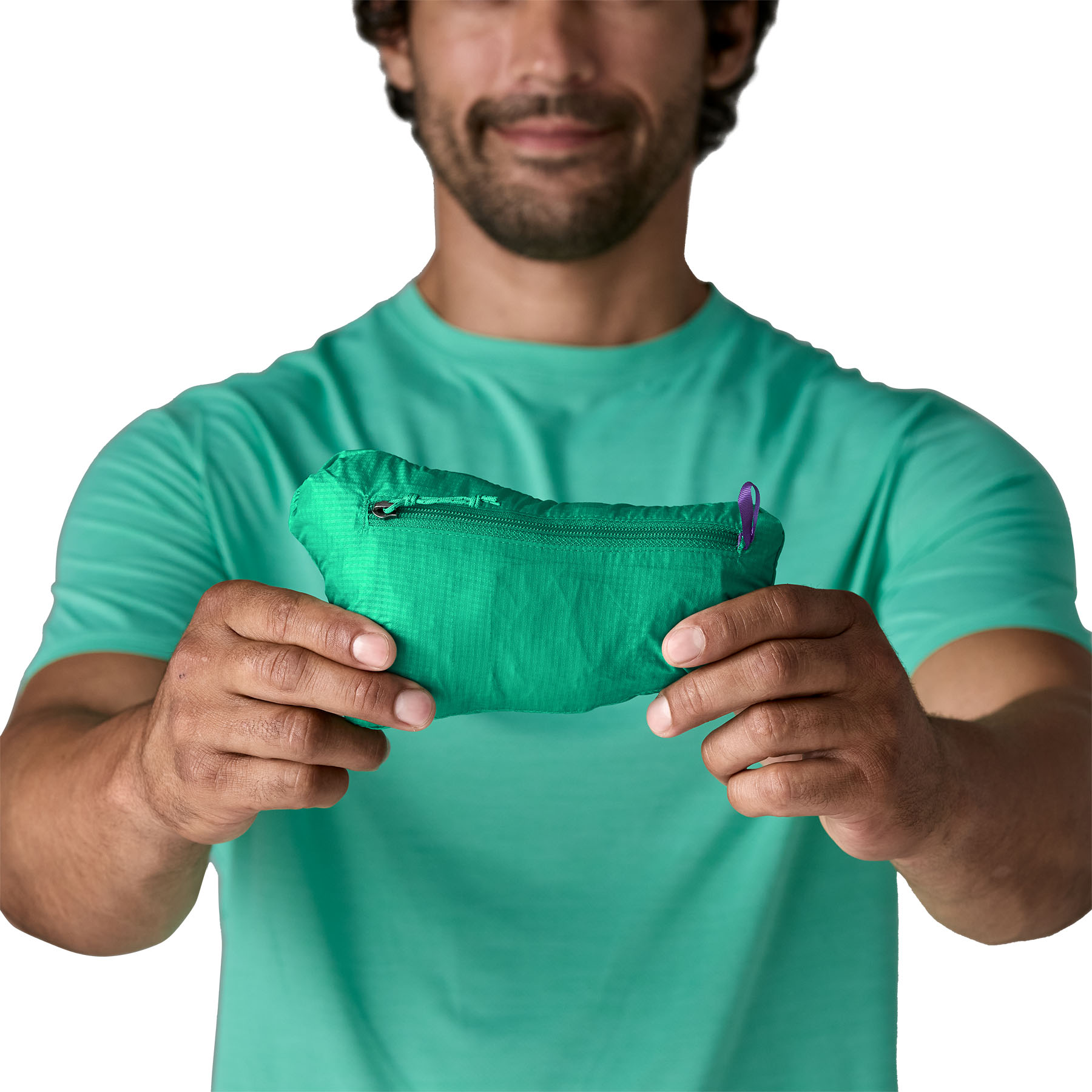 Джобът с цип на гърдите се превръща в чувал с подсилена примка за карабинер.